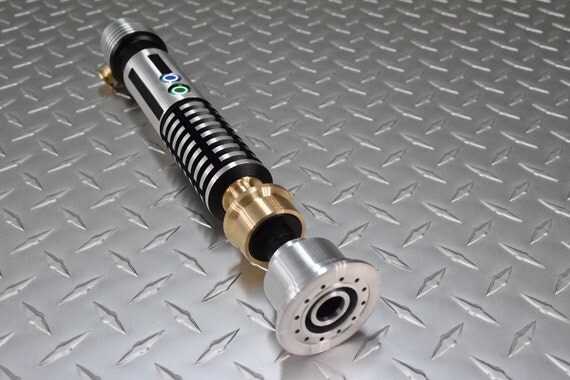 This elegant handle features a brass, black, and silver color scheme with the standard finish. Special attention was given to dueling ergonomics when designing this hilt, it has the easy spin points of a thin neck saber, but no control box to interfere with grip and transitions. This is by far the most comfortable thin necked saber currently on the market.