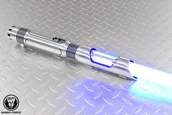 The elegant handle features a recessed AV switch. Accent windows allow the blades light to shine through, and a blade plug is included for display. An aluminum covertech knob complements the hilt's aesthetic.