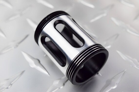 This part is constructed from aerospace grade alloys using multi axis machining. It is available in a hard coat anodized, weathered, or brushed finish.